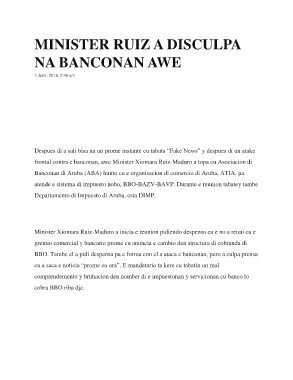 comprendemento y bruhacion den nomber di e impuestonan y servicionan cu banco lo