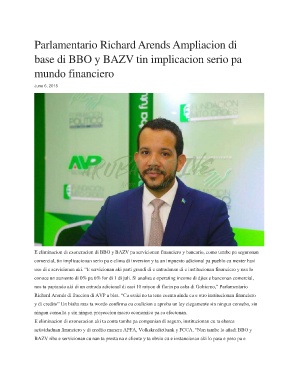 actividadnan financiero y di credito manera APFA, Volkskredietbank y FCCA. “Nan tambe lo añadi BBO y
