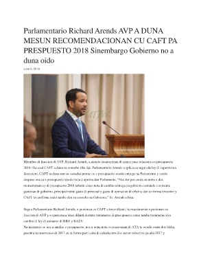 Miembro di fraccion di AVP, Richard Arends, a atende desaroyonan di siman pasa relaciona cu presupuesto