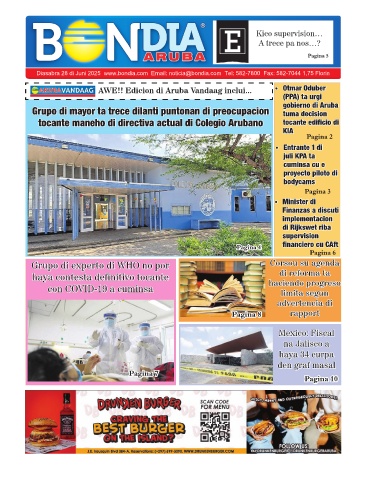 Diasabra 28 di Juni 2025 www.bondia.com Email: noticia@bondia.com Tel: 582-7800 Fax: 582-7044 1,75 Florin