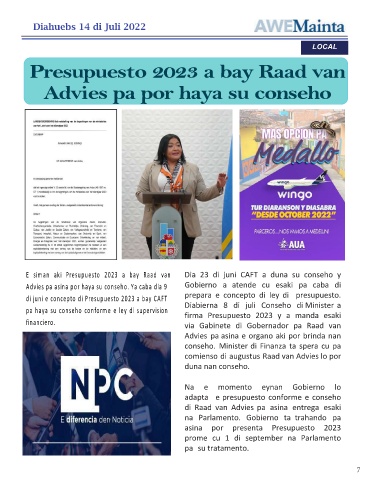 E siman aki Presupuesto 2023 a bay Raad van Dia 23 di juni CAFT a duna su conseho y
