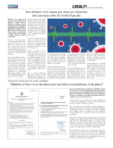 splica cuanto persona conta- manan dos dia prome cu esey nde e seriedad di e situacion, isla liber di Covid-19, na luna un presion hopi grandi riba