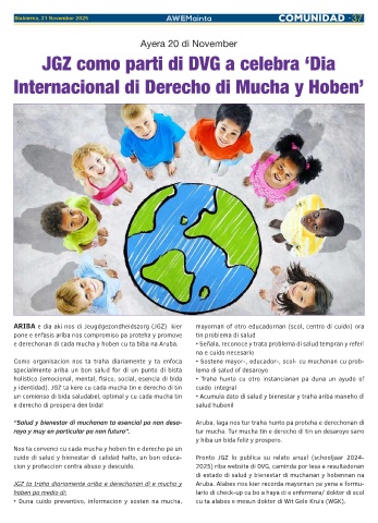 JGZ ta traha diariamente ariba e derechonan di e mucha y Aruba. Alabes nos kier recorda mayornan pa yena e formu-