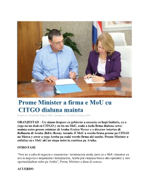 yega na un deal cu CITGO y cu tin un MoU, esaki a keda firma dialuna (awe)