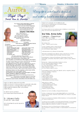 Sr. Urbano Kelly Adres pa condolencia: Paradera 190 B, Diabierna 11 di November 2022