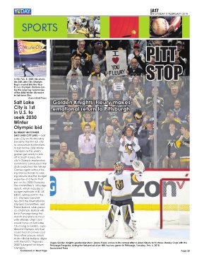 with the IOC’s “Agenda Vegas Golden Knights goaltender Marc-Andre Fleury waves to the crowd after a video tribute to his three Stanley Cups with the