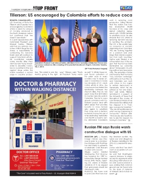 Tillerson: US encouraged by Colombia efforts to reduce coca
