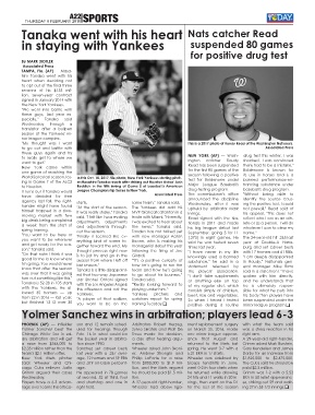 know that after the season Tanaka is a little disappoint- team and how he’s going statement released by eral manager Mike Rizzo