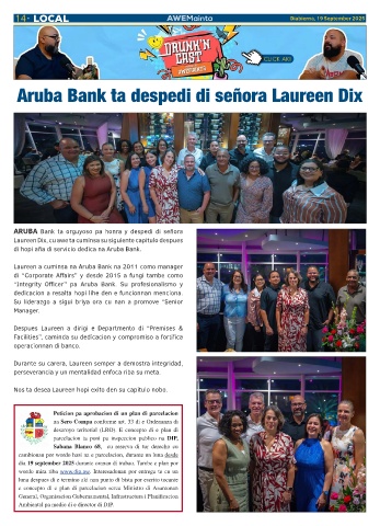 ARUBA Bank ta orguyoso pa honra y despedi di señora