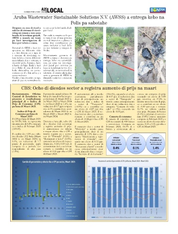 Prijs di Consumo (CPI) te cu Maart 2025 ta 1.4%, un e sector di “Transporte” door di un reduccion den e cu a contribui cu un efecto
