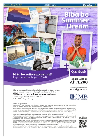 E suma SUMMER CASH BACK di Afl. 1,200.00 ta conta exclusivamente pa tur sumanan di prestamo di Afl. 15,000.00 of mas y