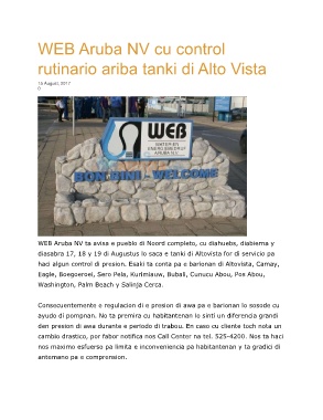 WEB Aruba NV ta avisa e pueblo di Noord completo, cu diahuebs, diabierna y
