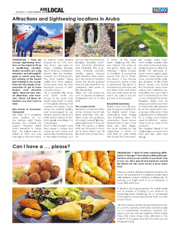 sights, historical and natu- For 4 centuries the horse When you visit Aruba be sure you park safely in the portunities. You can’t miss it