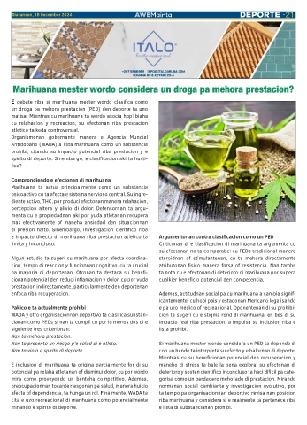 pa mayoria di deportenan. Otronan ta destaca su benefi- ta nota cu e efectonan di deterioro di marihuana por supera