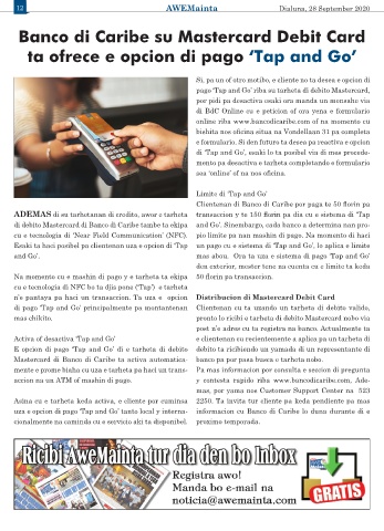 uza e opcion di pago ‘Tap and Go’ tanto local y interna- informacion cu Banco di Caribe lo duna durante di e