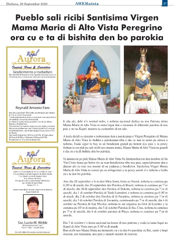 Dianan28 September 2020 pa 6:30 PM, 30 September A keda dicidi cu durante e nobenanan den e parokianan e Virgen Peregrino di Mama