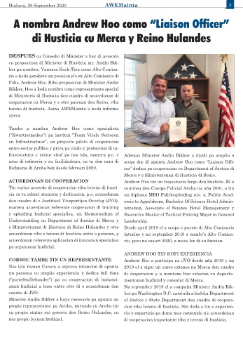 area di refineria y su facilidadnan, cu ta den man di scope dor di apunta Andrew Hoo como “Liaison Offi-