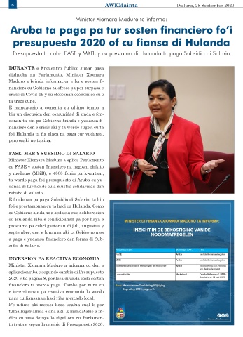 Presupuesto ta cubri FASE y MKB, y cu prestamo di Hulanda ta paga Subsidio di Salario