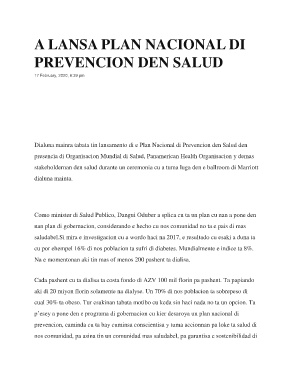 Dialuna mainra tabata tin lansamento di e Plan Nacional di Prevencion den Salud den