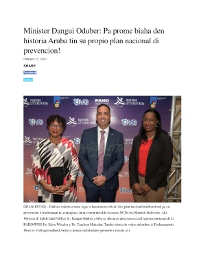 ORANJESTAD – Dialuna mainta a tuma lugar e lansamento oficial di e plan nacional multisectoral pa cu