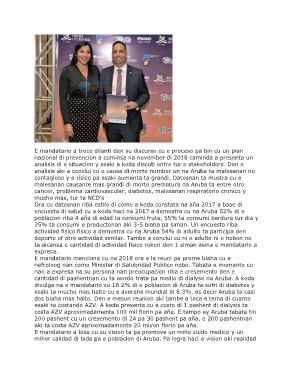 divulga na e mandatario cu 16.2% di e poblacion di Aruba ta sufri di diabetes y