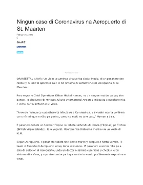 rolstul y cu nan ta aparenta cu e lo tin sintoma di Coronavirus na Aeropuerto di St.