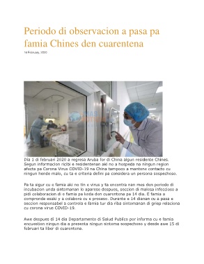 Dia 1 di februari 2020 a regresa Aruba for di China algun residente Chines.
