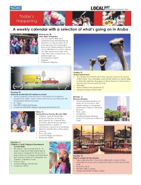 A weekly calendar with a selection of what’s going on in Aruba