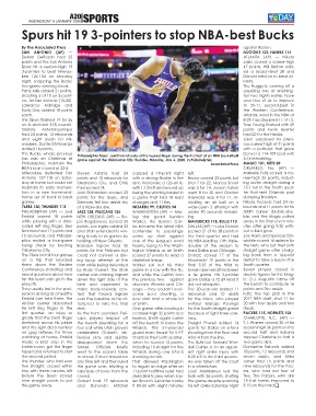 Spurs hit 19 3-pointers to stop NBA-best Bucks