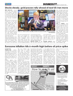 other safer harbors. some of the biggest de- Gold was holding steady a The Dow Jones Industrial ing for an Iranian response