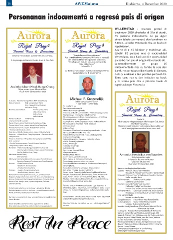 Den caso cu nos por a lubida algun persona of famia, nos ta pidi nos mas Condolencia lo tuma lugar na Aurora Funeral Home diabierna 4 Jeroen van der Putten
