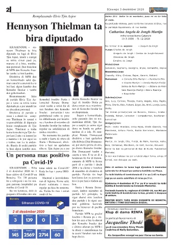 kaso aktivo di Covid-19 na 0800. partido. Partido tin hopi Ta risibi bishita di kondolensia di 1’or pa 2.45 na Kapel