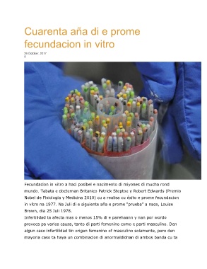 in vitro na 1977. Na Juli di e siguiente aña e prome “prueba” a nace, Louise