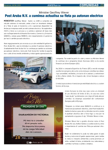 pa autonan electrico. Asina aki Post Aruba N.V tambe ta aporta
