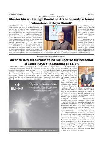 ORANJESTAD (AAN): cion di pago di 11.7% di cumpli cu e pago di index- E parlamentario ta