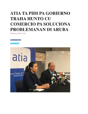 ATIA TA PIDI PA GOBIERNO TRAHA HUNTO CU COMERCIO PA SOLUCIONA PROBLEMANAN DI ARUBA 22 February, 2018, 9:57 pm 13 Share on Facebook Tweet on Twitter