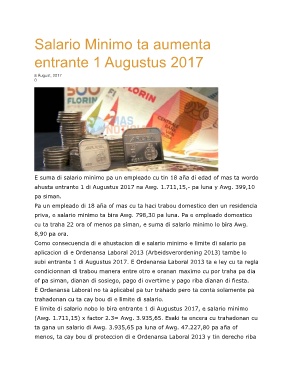 E limite di salario nobo lo bira entrante 1 di Augustus 2017, e salario minimo