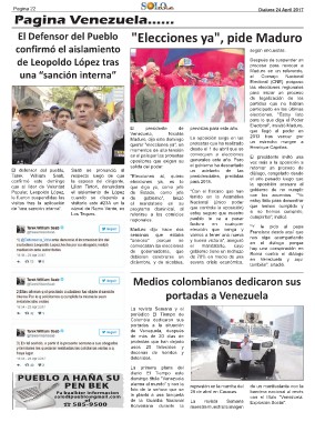 periódico El Tiempo de 20 de abril en Caracas. bandera nacional al revés