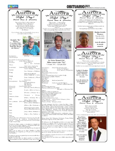 7.00 y 9.00 pm na Aurora Funeral Home. hiba nos defunto na su ultimo lugar di sosiego na Santana Momal of Mr.