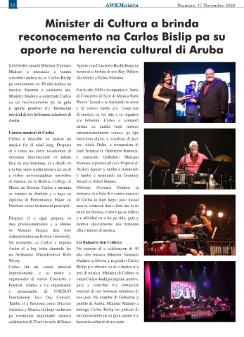 Carlos tin un carera musical Bislip p’e añanan cu el a dedica n’e
