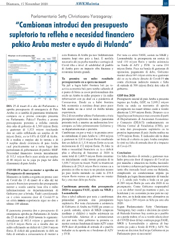 di Aruba pero su impacto riba finansas y miyon florin. Pues na banda di gastonan di
