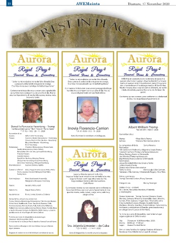 E resto mortal lo ta 2or pa 4or di atardi na Aurora Funeral Home. Dia: Diaranson 18 di November, 2020.