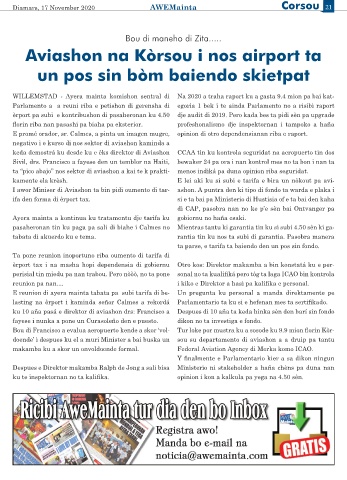 èrport pa subi e kontribushon di pasaheronan ku 4.50 dje audit di 2019. Pero kada bes ta pidi sèn pa upgrade