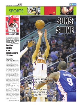 now stands alone behind game, Monday, Nov. 4, 2019, in Phoenix. The Suns
