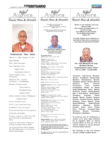 Viewing : August 24, 2021 from 7:00 bisiñanan. Ta invita pa acto di condolencia y