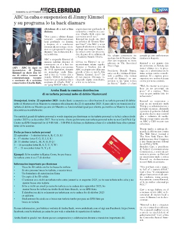Oranjestad, Aruba 22 september 2025- Aruba Bank ta anuncia cu e distribucion di su tarheta personal di debito Kimmel su suspension a