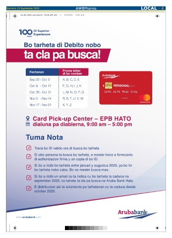 Diamars, 23 September 2025 AWEMainta LOCAL 4 AB_NP_CARDS_papiamento COLOR_AF©.pdf 1 10/09/25 9:49 a.m. C M Y CM MY CY CMY K