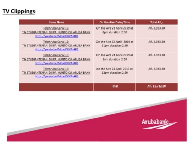 TeleAruba Canal 13: On the Aire 23 April 2019 at Afl. 2.933,20
