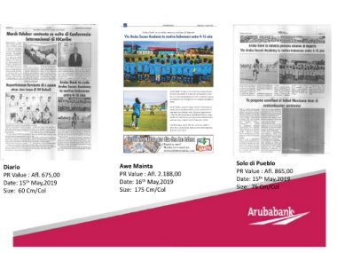 Solo di Pueblo Diario Awe Mainta PR Value : Afl. 675,00 PR Value : Afl. 2.188,00 PR Value : Afl. 865,00 th Date: 15 May,2019 th th Date: 15 May,2019 Date: 16 May,2019 Size: 60 Cm/Col Size: 175 Cm/Col Size: 75 Cm/Col