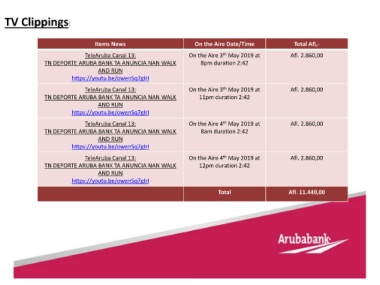 TeleAruba Canal 13: On the Aire 4 May 2019 at Afl. 2.860,00